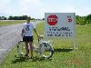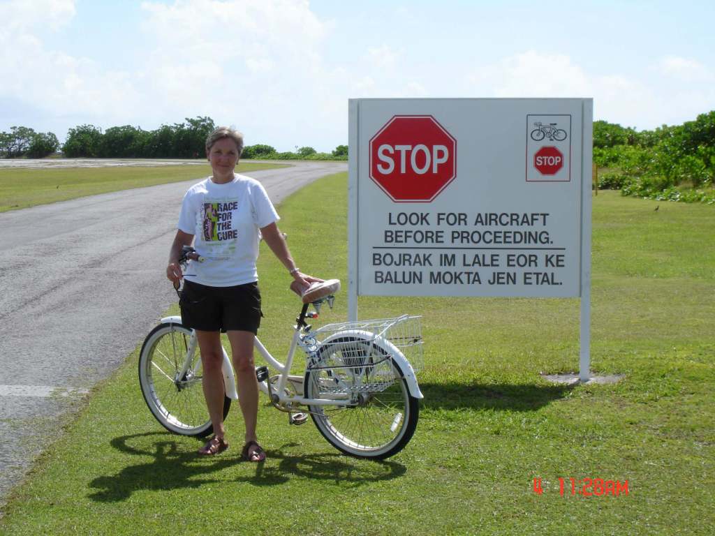 Linn at the end of the runway - she races the planes with her high-tech bike